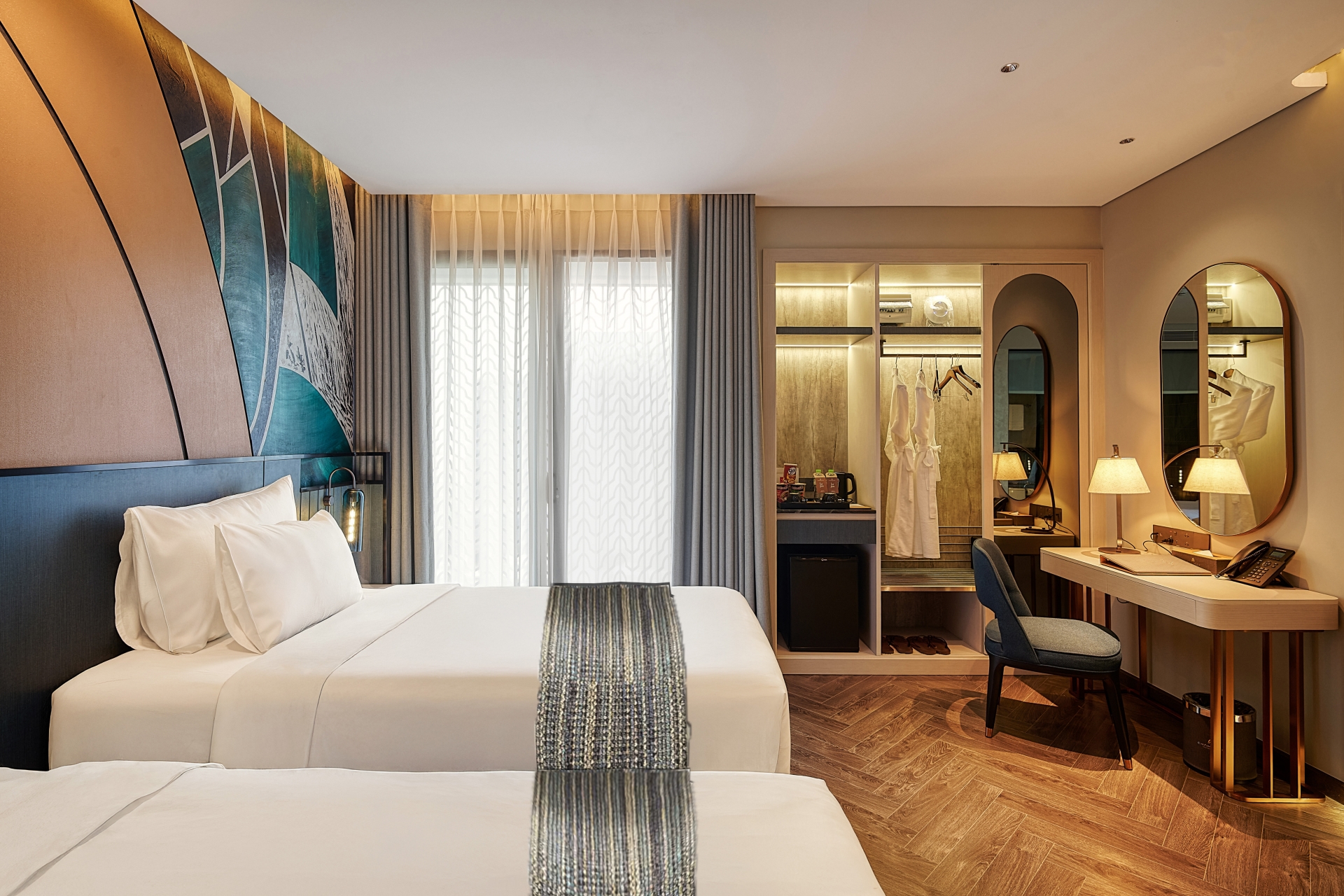 Các phòng có diện tích 29 m², ban công riêng hướng biển và được chăm chút tỉ mỉ trong từng chi tiết: từ chiếc gối dựa êm ái, chiếc đệm với chiều cao hợp lý, chiếc rèm lụa Việt Nam óng ả và thiết kế mở tối đa ánh sáng… đang mời gọi bạn chạm tay vào sự thư giãn thực sự.