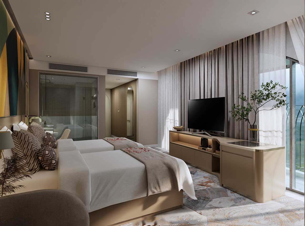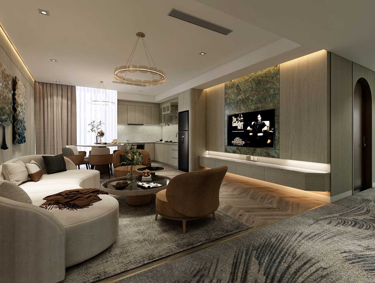 Occupying the entire 18th and 19th floors of Champton Nha Trang Hotel, the Executive Suite stands out for its refined design, luxurious finishes, and creative layout.