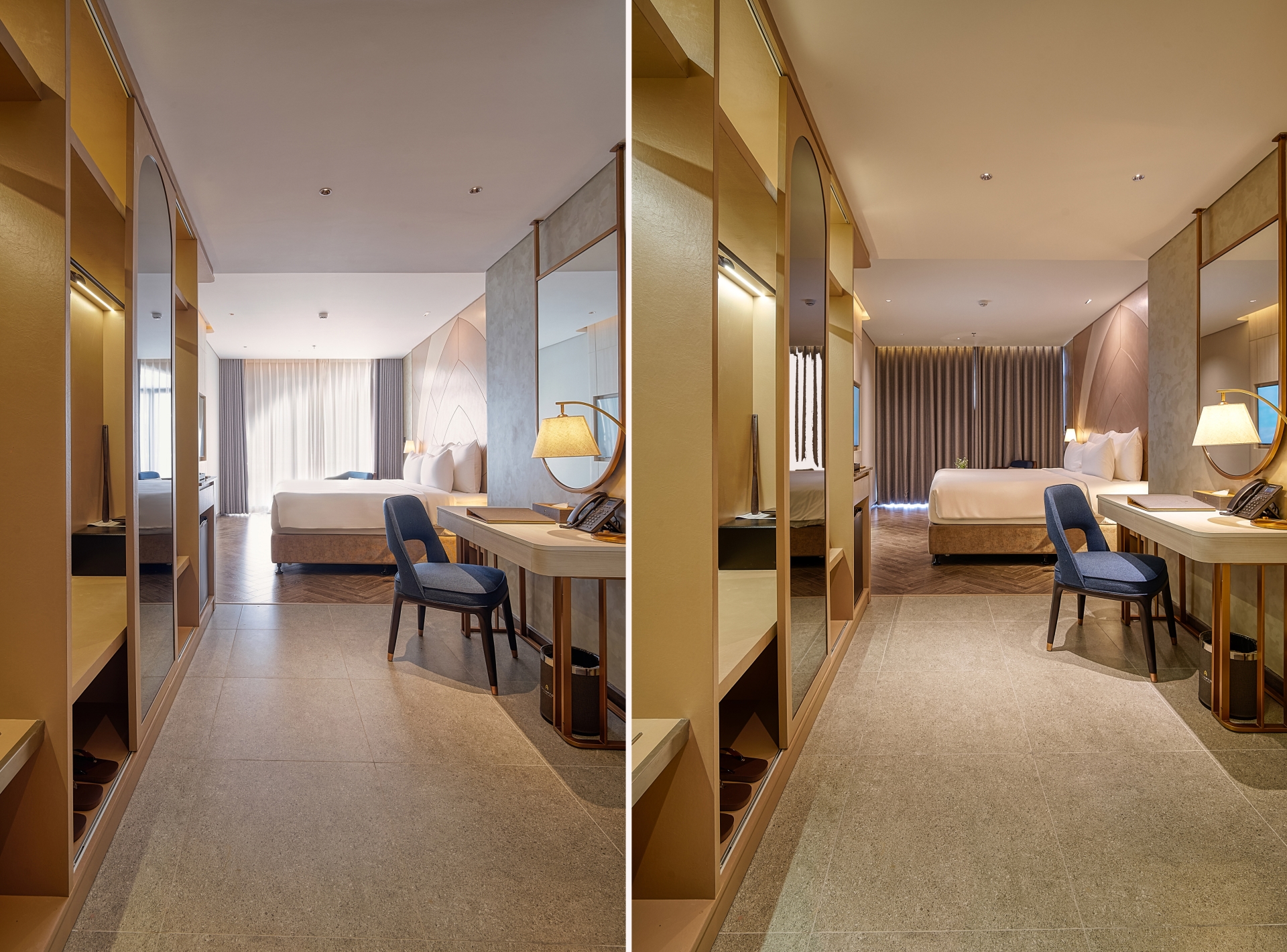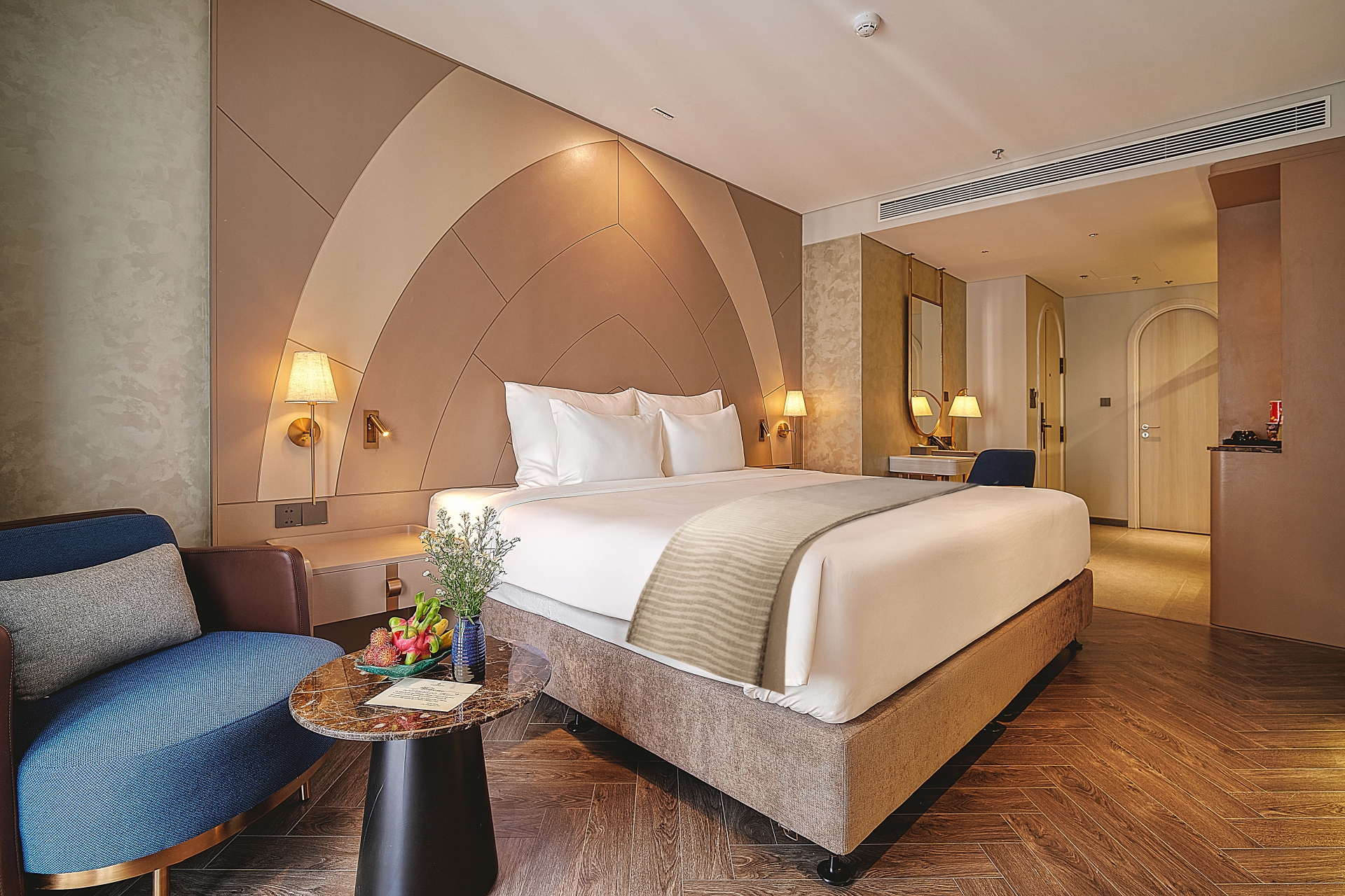 Các phòng có diện tích 29 m², ban công riêng hướng biển và được chăm chút tỉ mỉ trong từng chi tiết: từ chiếc gối dựa êm ái, chiếc đệm với chiều cao hợp lý, chiếc rèm lụa Việt Nam óng ả và thiết kế mở tối đa ánh sáng… đang mời gọi bạn chạm tay vào sự thư giãn thực sự.